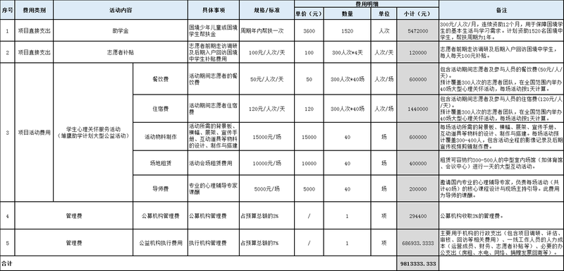 总预算9813333.33万元,预计可覆盖帮扶人群1520人次: