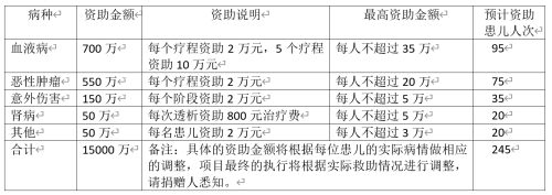 项目预计为“小9超人急救行动”筹款1500万元,救助至少245名贫困家庭大病儿童,根据患儿家庭情况可重复资助,筛选标准:1.项目面向在北京及周边(燕郊、天津)地区进行治疗的贫困家庭0-18岁儿童;2.具备当地政府盖章认可的贫困证明原件;3.具备三级公立医院提供的大病诊断证明;4.血液病、肿瘤等长期治疗病种优先,意外伤害患儿仅资助意外初发阶段急救治疗;5.由9958医疗专家团队评估后认可现阶段所需治疗为必需治疗或孩子现阶段继续治疗;项目面向符合以上筛选标准患儿开放,实际资助金额根据患儿治疗方案、家庭自筹情况有所调整。