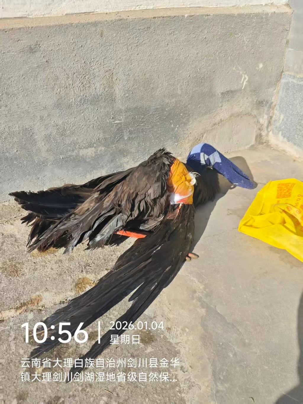 图 2 2026年1月4日,大理剑川剑湖湿地省级自然保护区管护局移交一只骨折黑鹳,后因伤势过重死亡。具体可见《折翼黑鹳:保护中心的无奈》一文。 |