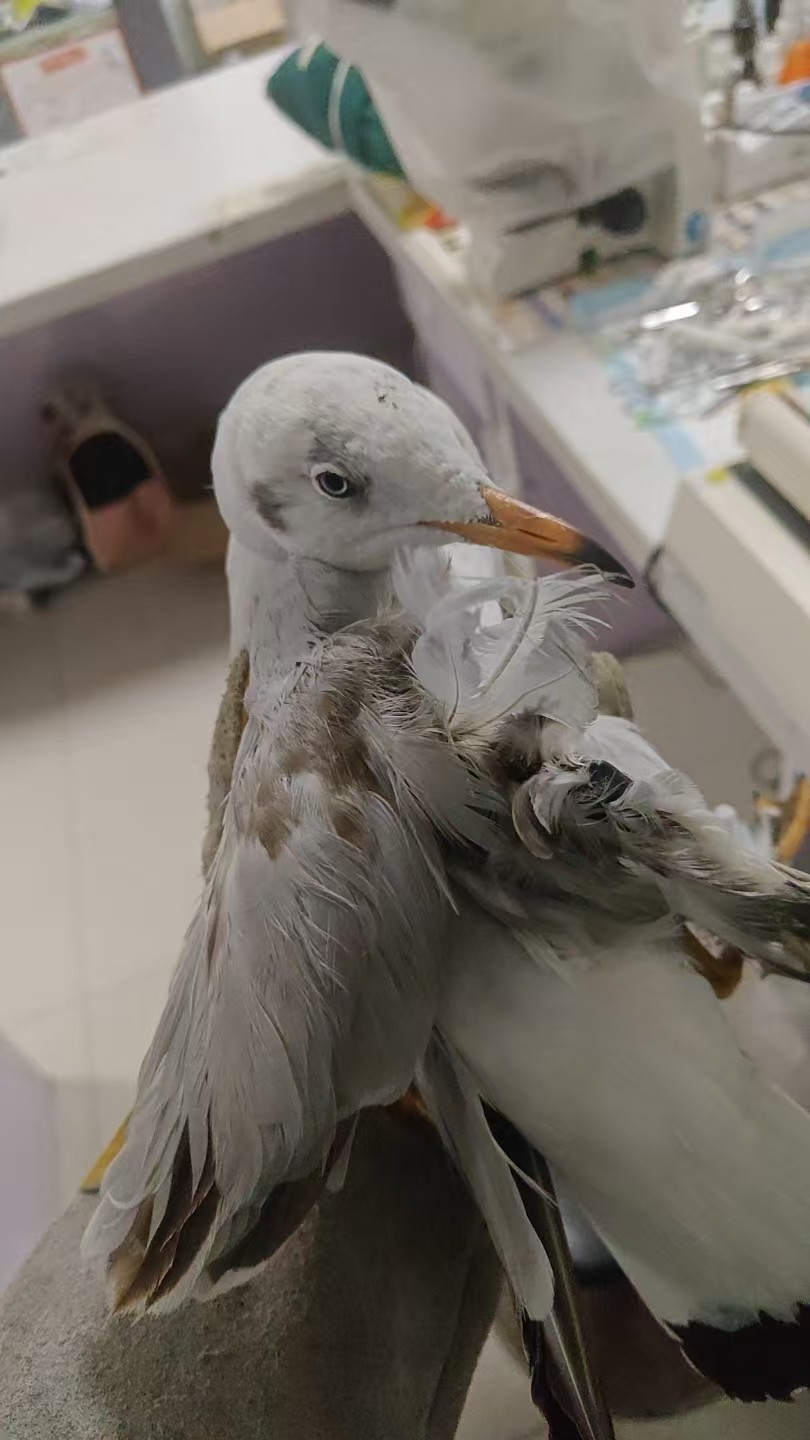 图 3 2026年1月22日,大理市公安局古城派出所送来一只骨折的海鸥。工作人员细致检查后发现,该个体右翅骨折,当天死亡。 |
