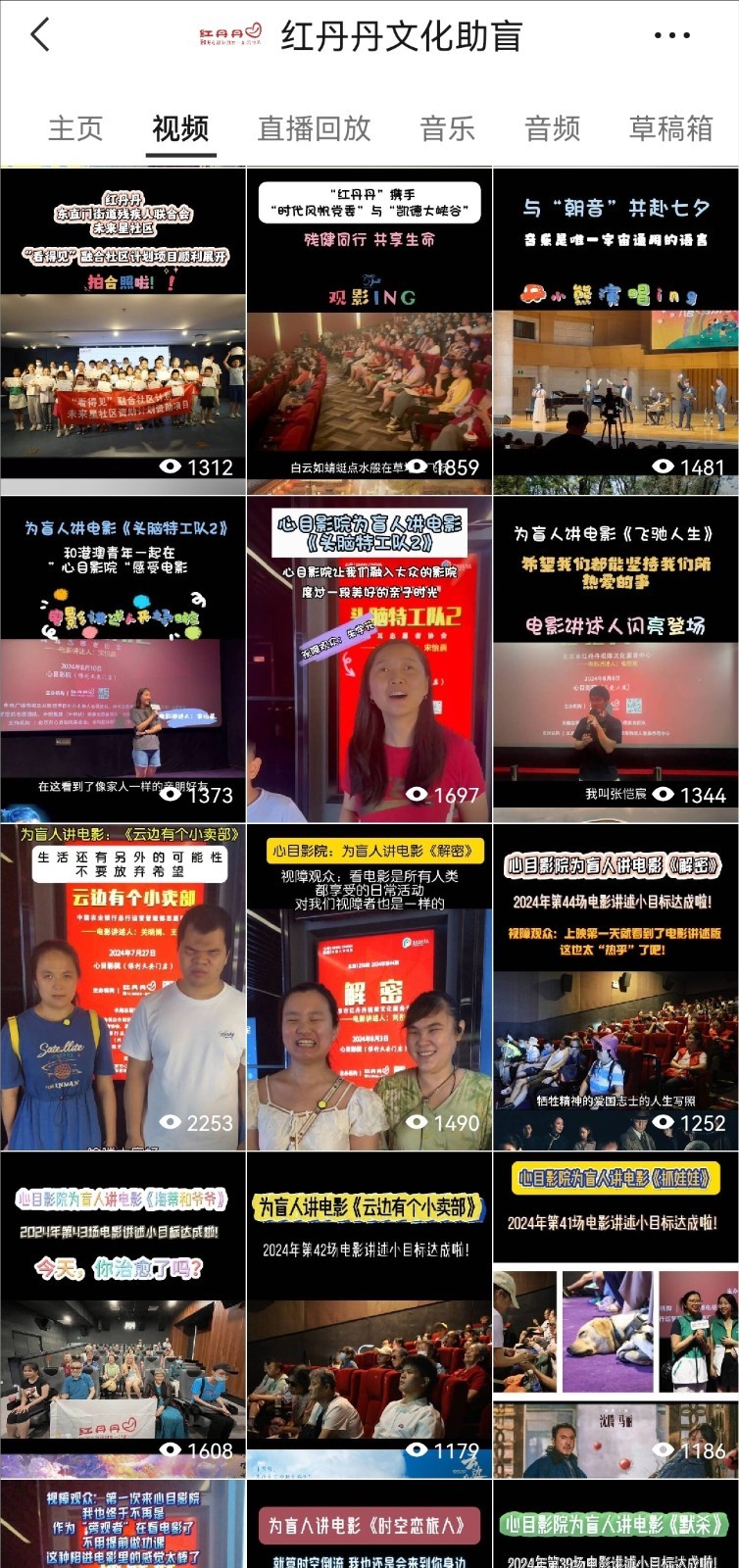 活动现场记录并剪辑视频——参与“红丹丹”主办的各类活动,用镜头记录下那些温暖而动人的瞬间。从视障朋友的才艺表演到志愿者们的无私奉献,每一个画面都充满了爱和力量。