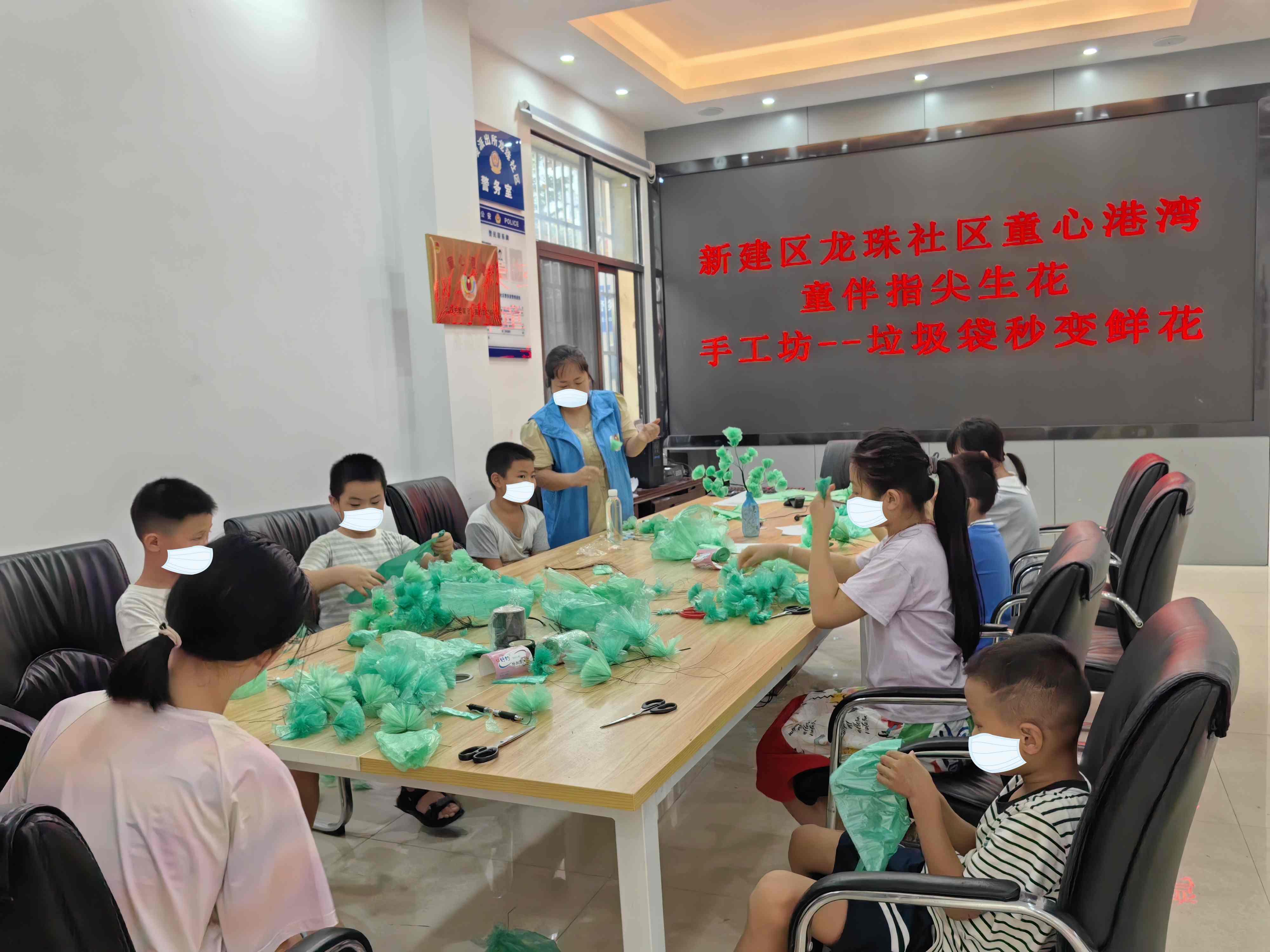 8月23日龙珠社区童心港湾组织开展了“垃圾袋秒变鲜花”主题活动。活动伊始,童伴妈妈先用铁丝扭住垃圾袋做小花朵,从小花朵做成中花朵再合成大花朵。孩子们也边学边做,通过扭小花朵、组装、拼接等技巧,将垃圾袋变成漂亮的花束,现场氛围十分热烈。通过此次活动既能实现垃圾袋的环保再利用,又能让孩子们在动手创作中提升环保意识。