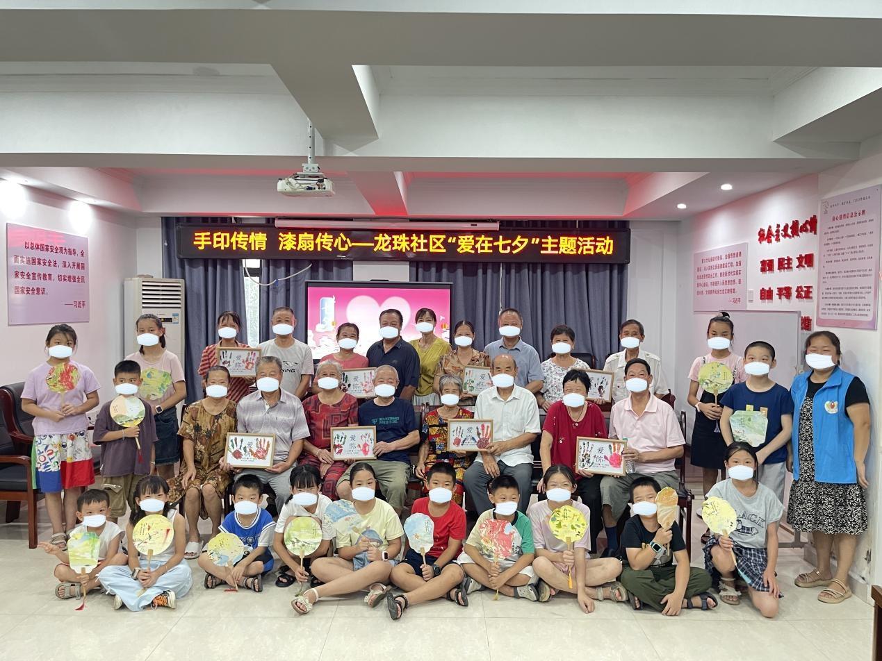 为弘扬中华优秀传统文化,丰富居民精神文化生活,感受非遗文化魅力,8月29日上午,长堎街道龙珠社区童心港湾开展“手印传情 漆扇传心”主题活动,8对老年夫妻与16名儿童共同参与,通过手印相框与漆扇制作,演绎跨越年龄的浪漫与温情。