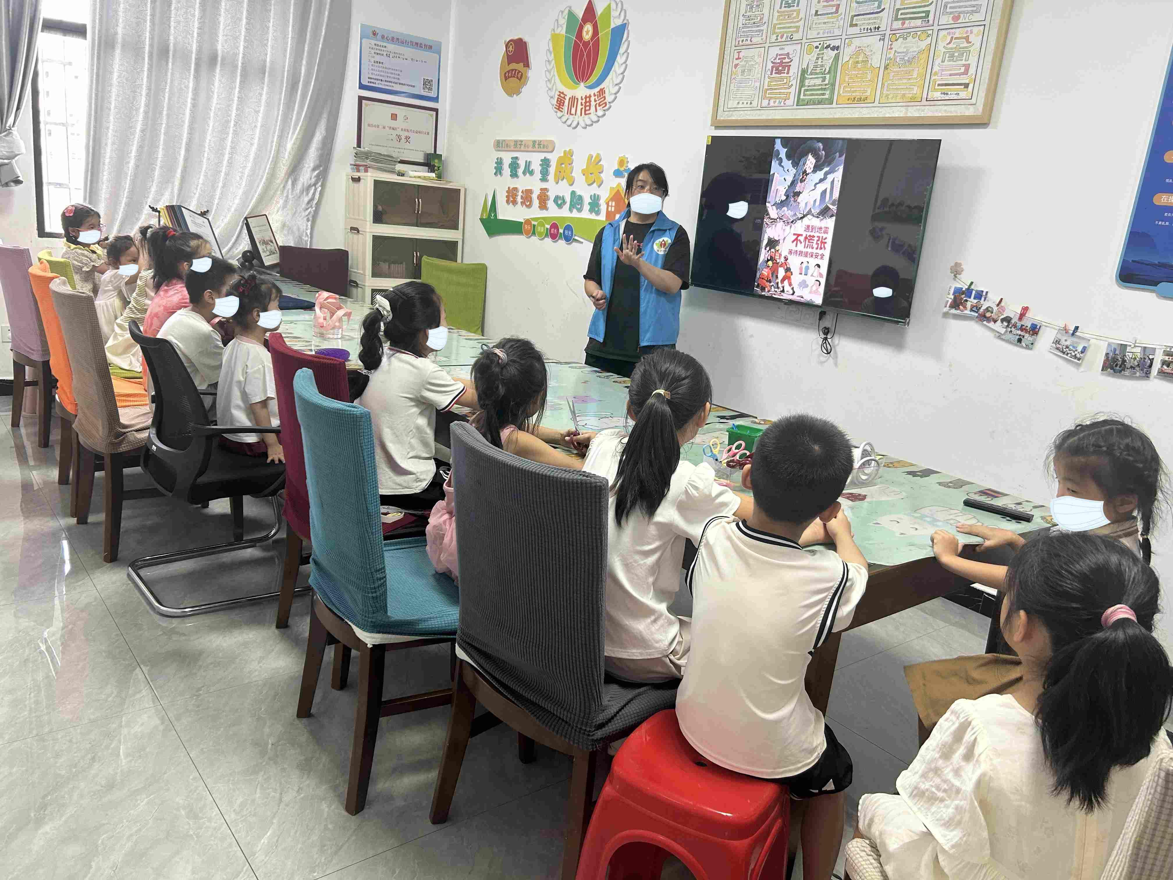活动伊始,童伴妈妈通过精心制作的PPT和生动形象的视频,围绕地震、洪涝灾害、火灾等突发自然灾害和事故灾难等情况科普知识,尤其对山体滑坡、洪涝灾害的高发时段与区域特征,还深入讲解了正确的自救姿势与互救禁忌。更重要的是,童伴妈妈介绍了暴雨、洪水、泥石流、山体滑坡等4种以上自然灾害预警信号及相应的避险措施,帮助儿童清晰理解极端天气与次生灾害的关联性,学会根据预警信号采取正确行动,比如如何选择疏散路线、怎样准备家庭应急物资等,让大家对防灾减灾知识有了全面的认识。