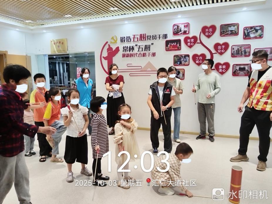 1. 2025年10月3日上午,汇仁大道社区童心港湾开展中秋节活动:共话传统来历,趣玩投壶游戏。活动中,志愿者首先用生动易懂的语言,向孩子们讲述中秋节的来历——从嫦娥奔月的神话传说,到古人祭月、赏月、团圆的传统习俗,让孩子们在故事里感受节日背后的文化底蕴。孩子们站在指定线外,手持箭矢尝试投入壶中,孩子们在欢声笑语中体验传统游戏的乐趣。