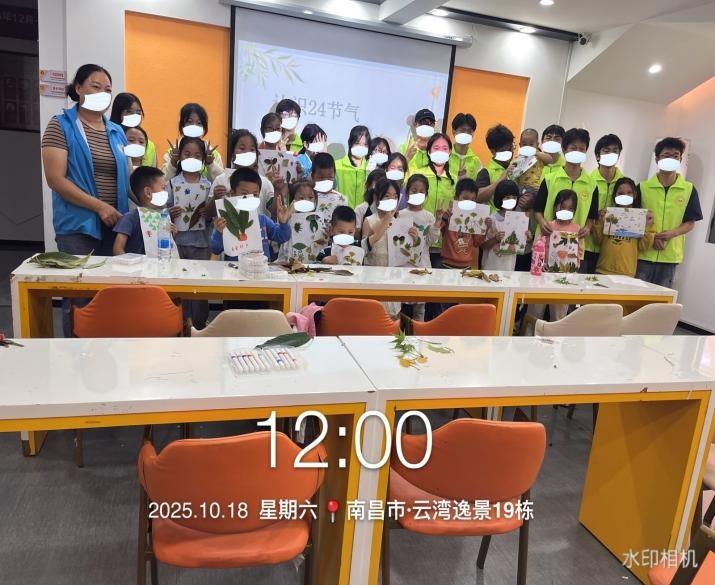 1. 2025年10月18日,站点开展了认识24节气的活动并手工制作了节气落叶贴画、树枝节气摆件、节气树叶书签。