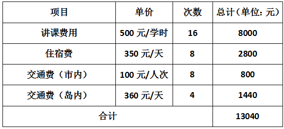 注:讲课费副高级职称400元/学时;正高级职称500元/学时。每季度开展一次,一次四学时。每次按两个正高级职称授课专家计算。