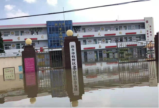 (浸泡在洪水中的河南省新乡市寺庄顶小学,图片已授权)