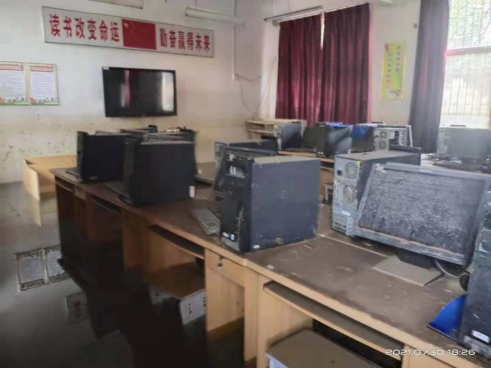 (开封市尉氏县邢庄乡水黄小学,所有电脑全部洪水浸泡损坏,图片已授权)