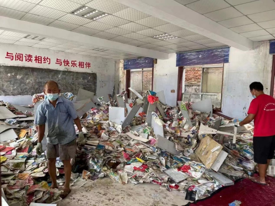 (卫辉实验小学图书室的所有图书,被洪水浸泡全部损坏,图片已授权)