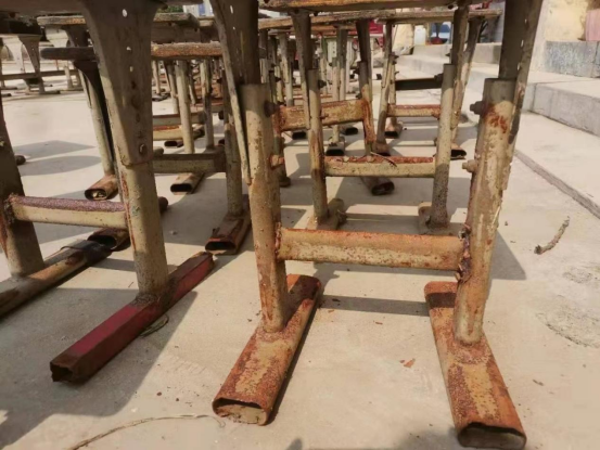 (浚县小河镇刘庄中心校,老师们从淤泥中清理出来的勉强能将就再用的课桌椅,放在操场上清洁风干,图片已授权)