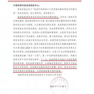 在政策建议方面,我们亦积极响应,在北京环助律师事务所的支持下,对《排污许可管理办法》(修订征求意见稿)等5部政策法律法规提出了共计50条建言建议。其中,递交给国家相关部委的《关于完善环渤海港口大宗货物运输转向铁路和电动重卡工作的建议函》,获得国家发展和改革委员会积极回应。