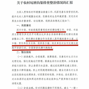 今年3月,深州市生态环境分局向我们提供了《深州市人民政府关于农村坑塘沟渠排查整治情况的汇报》,报告中详细说明了深州市为改善农村人居环境开展的系列工作:包括全面排查、一塘一策分类治理、严格考核问责和建立健全长效机制。同时,积极谋划农村坑塘治理(生态振兴示范)项目,采取“外源控污、内源清淤,消除隐患、提升品质,水体净化、生态恢复”等技术路线,对10 个乡镇 44 个行政村的 50 个坑塘环境进行提升。