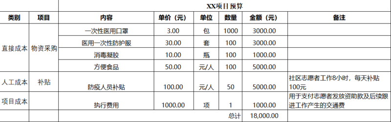 目标:筹集1.8万元,为社区一线防疫工作者发放口罩、防护服、消毒用品和方便食品。