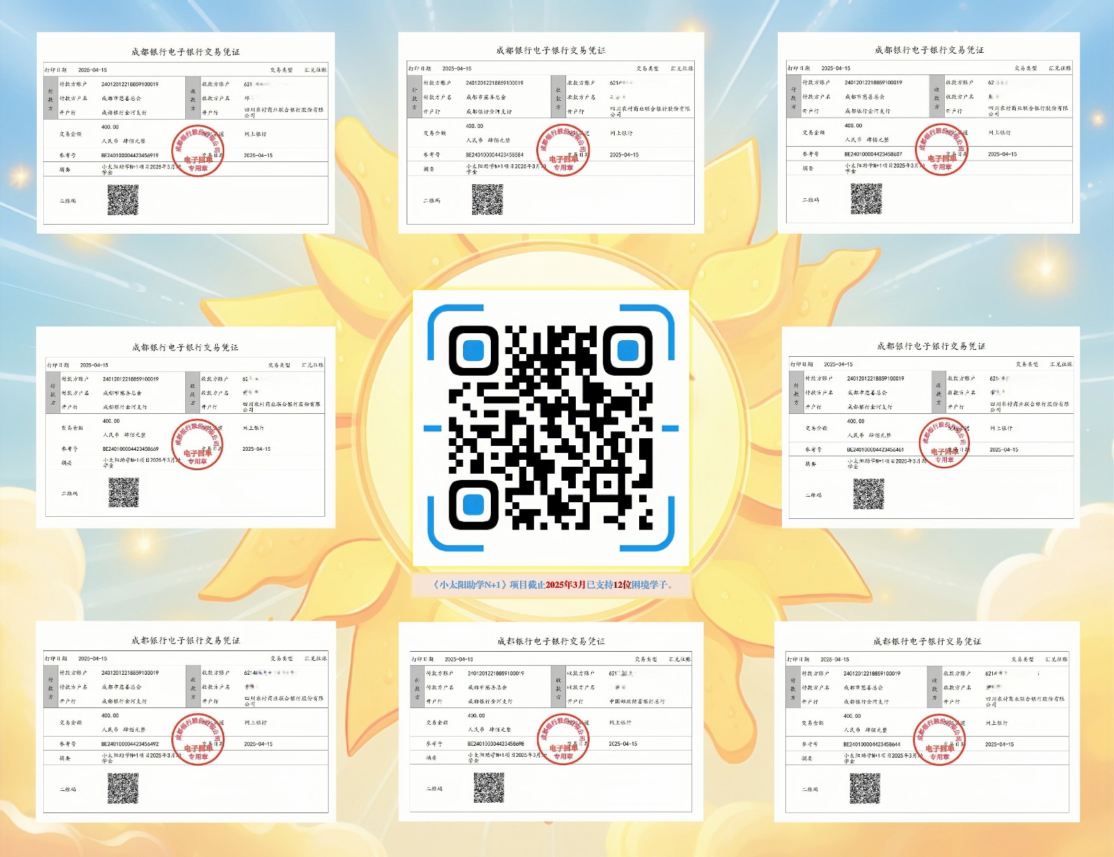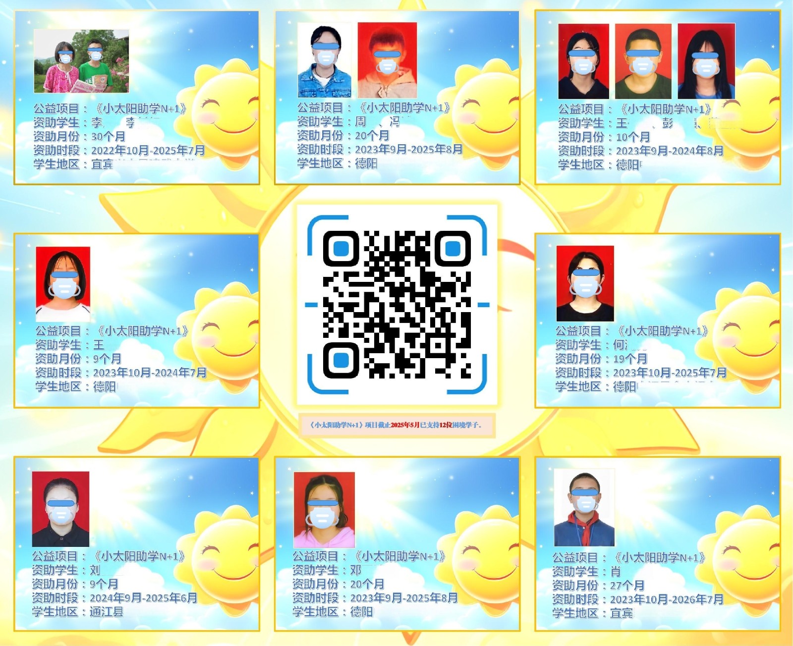 《小太阳助学N+1》项目共资助了12位困境家庭的在校学子,本项目自2025年5月1日-2025年6月30日,共拨付助学金6400元,资助学生16人次!