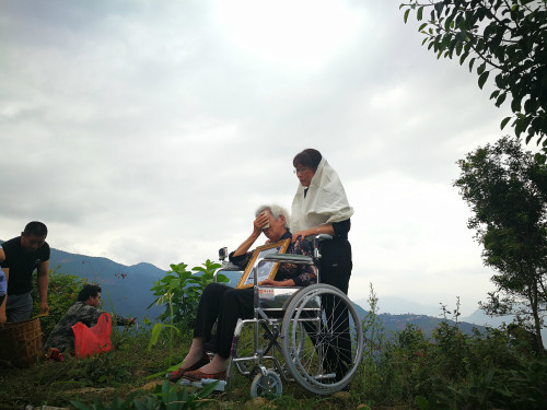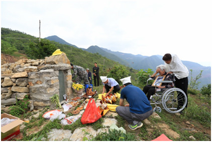 2017年6月1日,年过八旬的刘贞兰老人在亲人的陪同下,飞越三千余公里抵达云南施甸,首次祭拜自己的父亲。