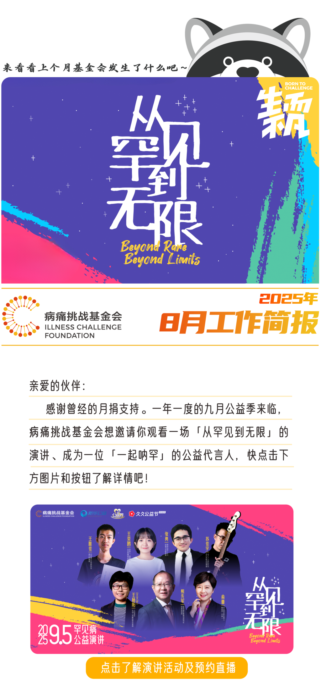 新项目:「让爱不罕见|病痛挑战基金会月捐计划」