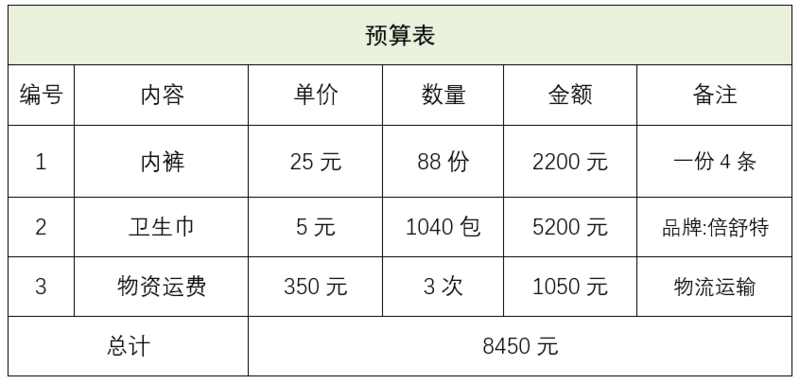 1.项目预算表