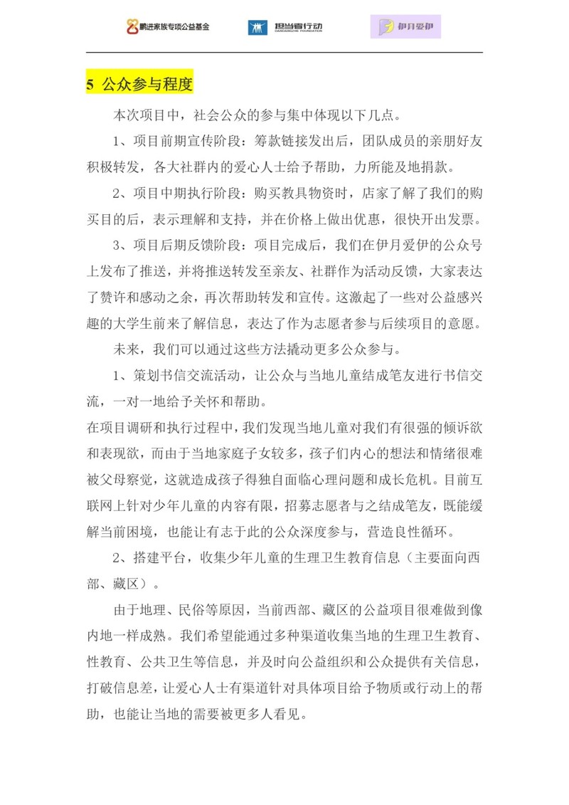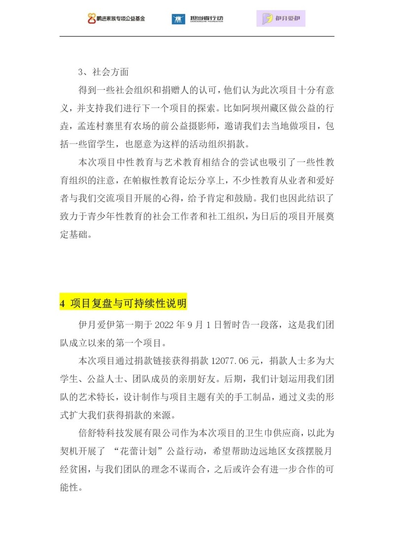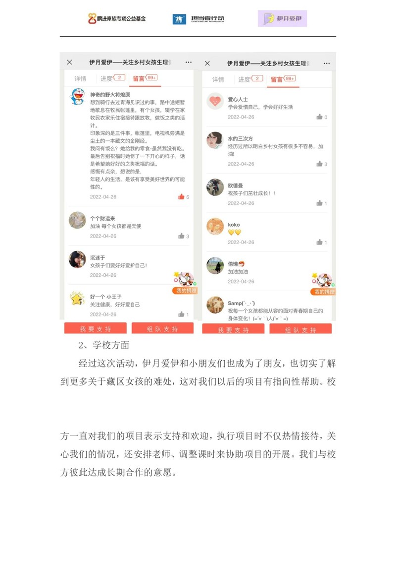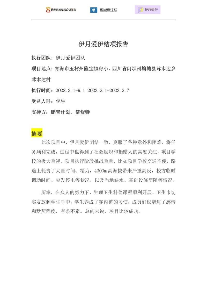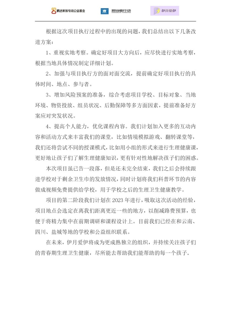 2022年,担当者行动发起鹏青计划,倡导大学生参与解决社会问题,此项目为第一期鹏青计划中“伊月爱伊”团队发起,由担当者行动作为公募方代为发起筹款。