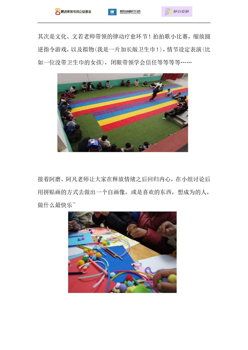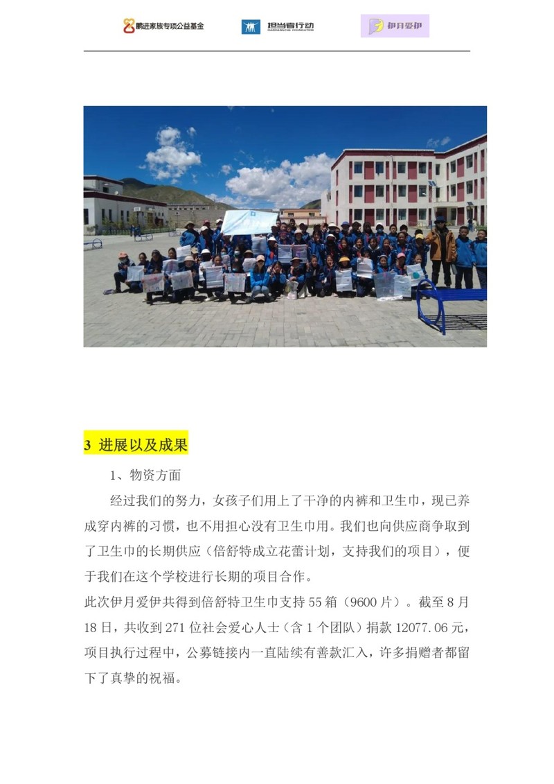 伊月爱伊将进行物资援助和心理健康教育援助两方面的活动。我们将向玉树市隆宝镇中心寄宿制学校(小学)的高年级的女童提供卫生巾以及内裤等生活必须品。我们还将针对高年级所有学生(同时包括男生和女生)展开生理卫生教育科普,并以生命与成长为主题开展写诗、绘画创作等活动,倾听解答青春期的困惑,带来温和有力的成长能量。