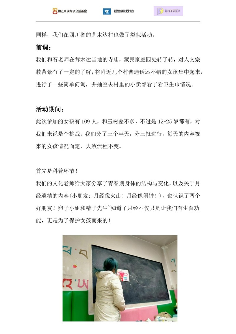经过调查,青海当地十分缺乏青春期健康相关的公益项目。