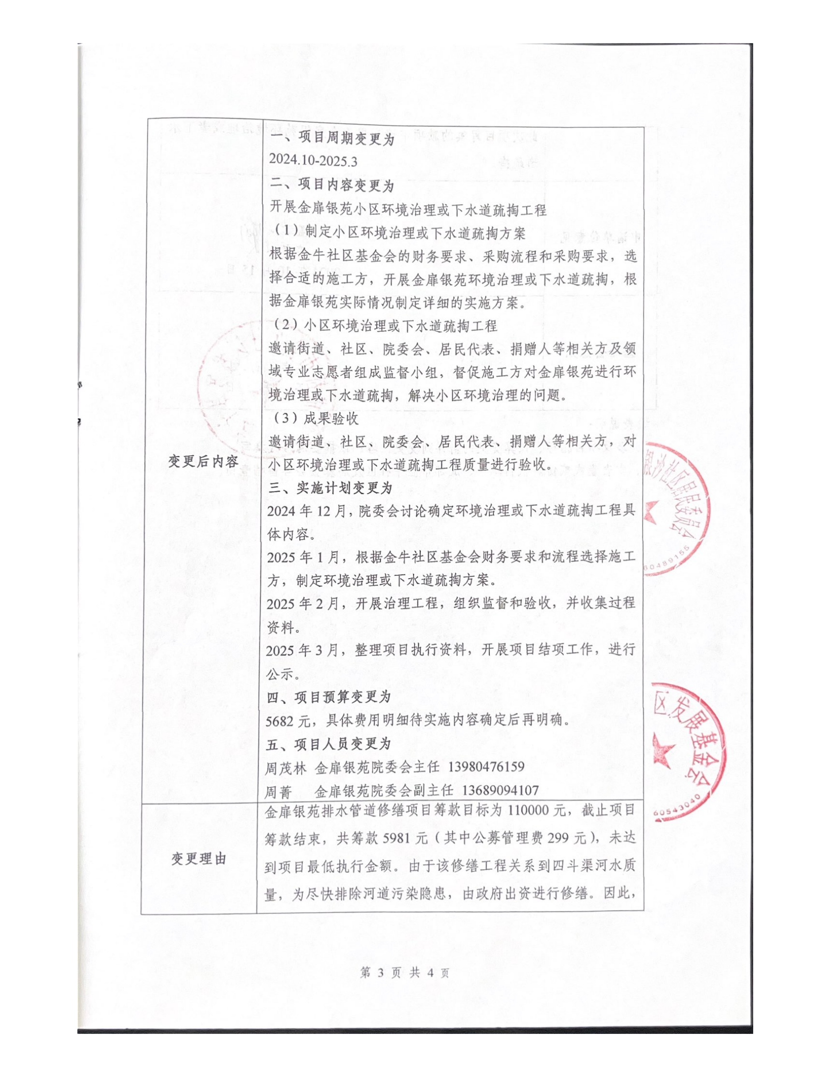 银沙社区申请项目变更,将募捐善款用于金扉银苑环境治理或下水道疏掏。
