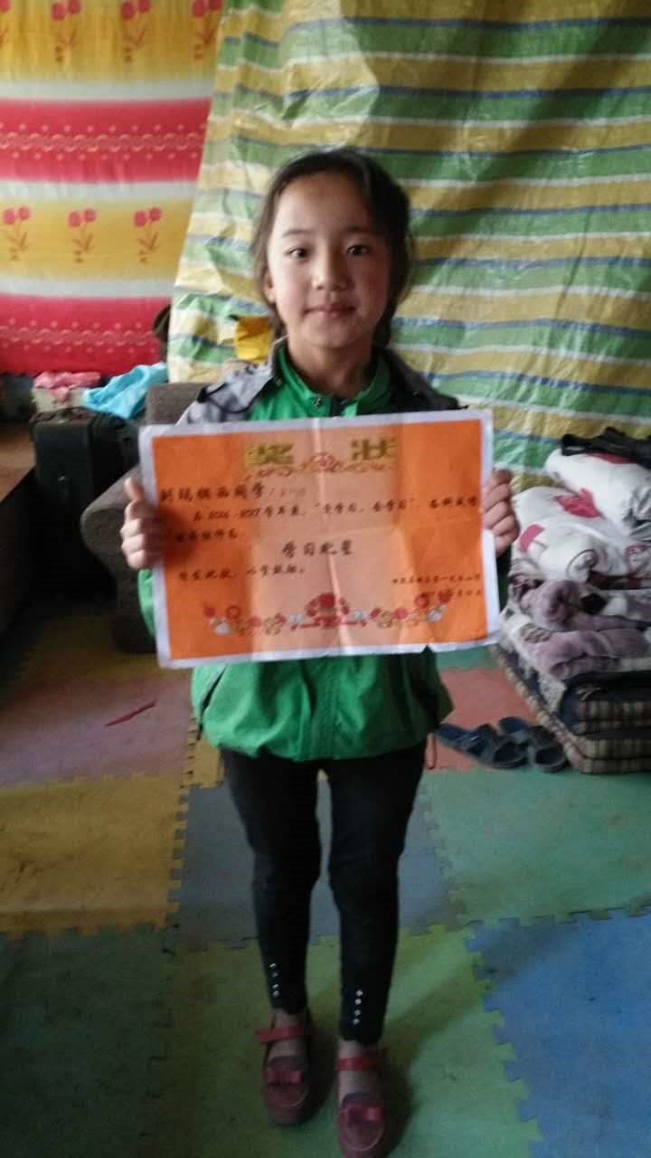 甘孜县城关第一完全小学一年级的泽西同学,父母离异,和妈妈、姐姐及外祖父母一起生活,是当地的低保家庭。虽然藏区的孩子也可以享受国家的九年义务教育,但是对于一个月收入不足500元的家庭来说,孩子的学杂费依然是一笔沉重的负担。妈妈跟小泽西说:“不要上学了吧,家里没有钱供你上学了。你待在家里可以不用花钱,还能替家里干活……”小泽西一度无奈地放下心爱的书包,离开了亲爱的同学们。校长把小泽西的情况推荐给了“慈爱感恩妈妈”,审核通过后她获得了每月300元的助学金。于是,小泽西重新走进学校,笑容又回到了她的脸上。