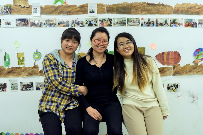 广东普宁溪南村溪南公益图书馆团队,从左到右为阿英、阿南、小竹(图片已获授权)